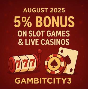 August 2, 2025 – Level Up This August: Enjoy 5% Bonus on Slot Games & Live Casinos at GAMBITCITY3